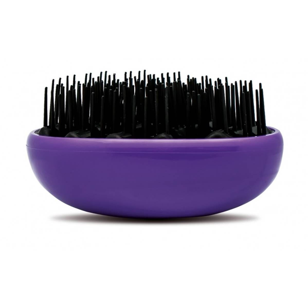 Brosse œuf, coloris violet et noir.Brosse qui grâce à sa forme et la séparation de ses dents permet de bien démêler les cheveux.