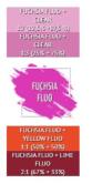 Elle existe en 4 nuances de bases, 8 nuances flash, 5 pastel et 4 nouvelles nuances FLUO, pour une chevelure illuminante de jour comme de nuit.