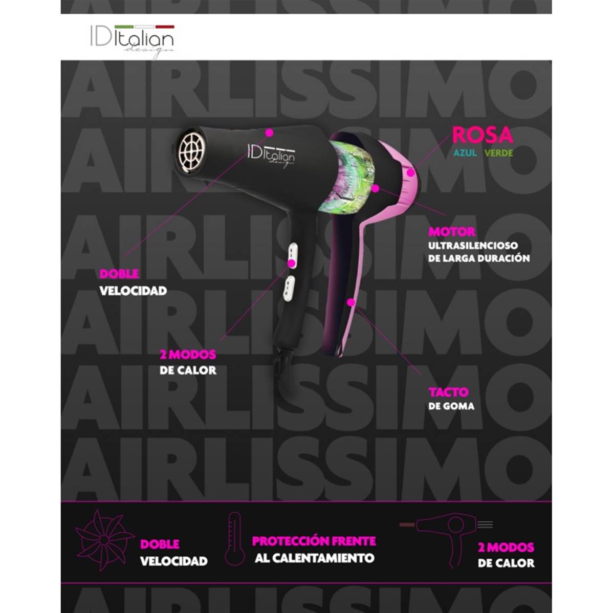 SÈCHE-CHEVEUX 2300 AIRLISSIMO ROSE ITALIAN DESIGN