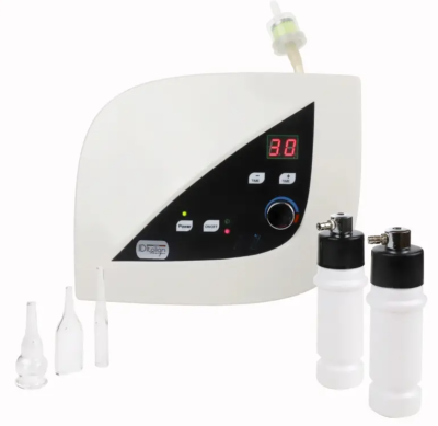 Le sélecteur de force d'aspiration permet d'adapter l'intensité du traitement aux besoins individuels, tandis que le sélecteur de temps de travail offre une flexibilité dans la durée du traitement. Cet appareil est indolore et sans effets secondaires, ce qui en fait une option sûre et efficace pour tous les types de peau.